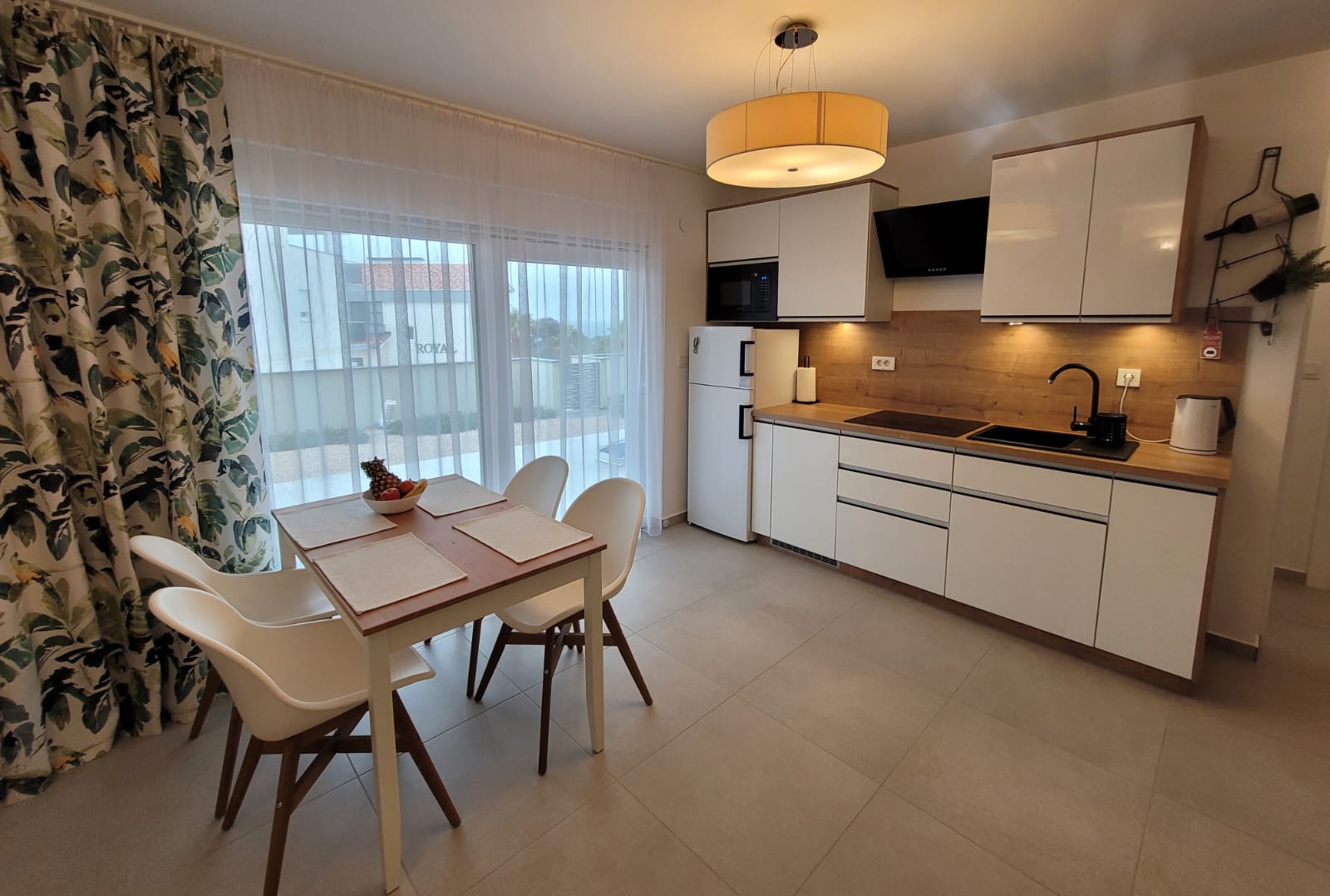 Komfortowo i funkcjonalnie urządzony 4 osobowy apartament na wyspie Pag w miejscowości Novalja. Mieszkanie o powierzchni 40m2 usytuowana jest na parterze 2 piętrowego budynku, z dużym tarasem i widokiem na morze. Składa się z dużego salonu z aneksem kuchennym, sypialni i łazienki. Dobrze zagospodarowana żwirowa plaża oddalona jest o około 500 metrów od obiektu. Krystaliczne wody Adriatyku w otoczeniu malowniczych gór gwarantują niezapomniane przeżycia. Zarówno miłośnicy przyrody, aktywnego wypoczynku jak i rodziny z dziećmi znajdą tu coś dla siebie.